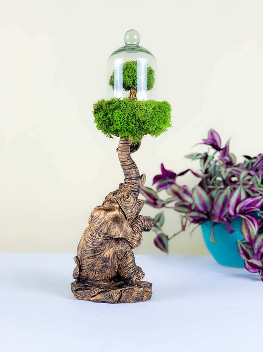 Elephant Terrarium with Moss – Handmade Zen Home Décor & Lucky Figurine
