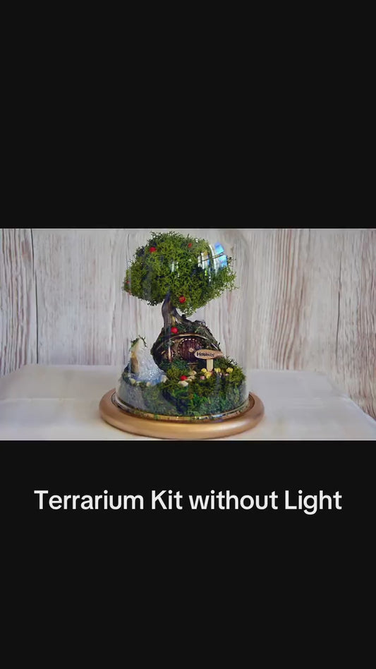 Hobbit House Terrarium in Glass Dome: Handmade Fairy House With Lights, Light Up Terrarium Kit, Cottagecore Decor,