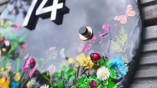 Custom House Number Plaque with Real Flowers – Resin Address Sign for Door or Gate – Handmade Outdoor Floral Number Plate – Waterproof & UV Protected
