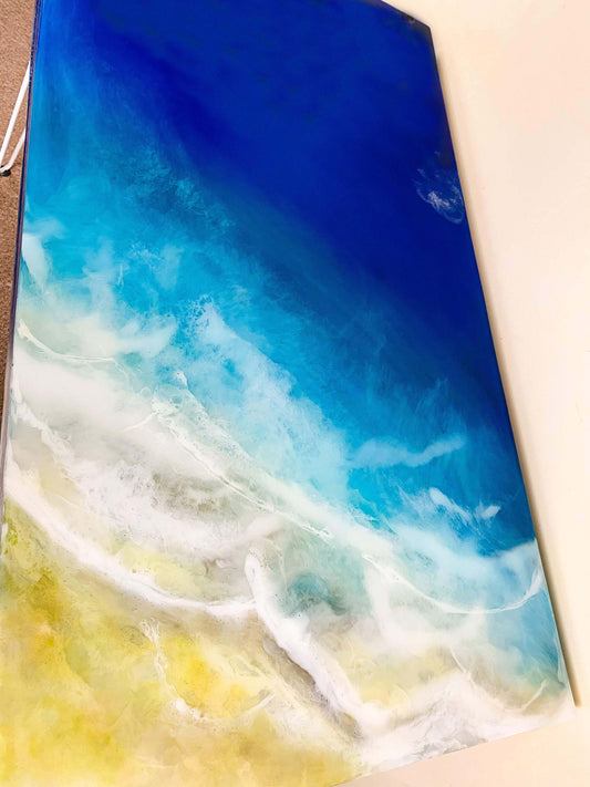 Ocean Resin Art Serving Tray | Handmade Wooden Beach Tray for Coastal Decor