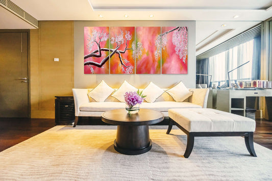 Multi panel Acrylic Painting, Cherry blossom wall art | Rishstudio