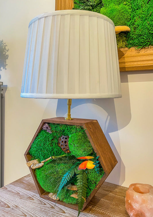 Wooden Hexagon lamp with Preserved Moss