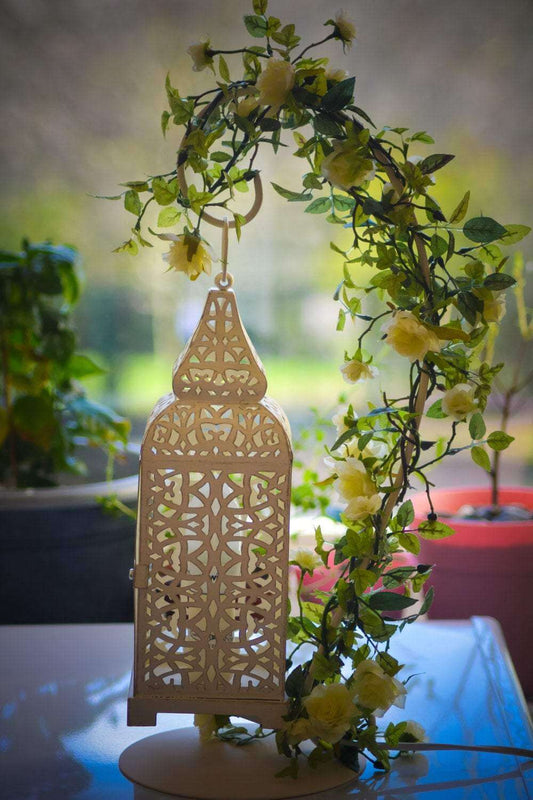 Eco-Friendly Moroccan Lantern with Floral Arch – Sustainable Boho Table Lamp for Elegant Ambient Lighting & Signature Home Decor