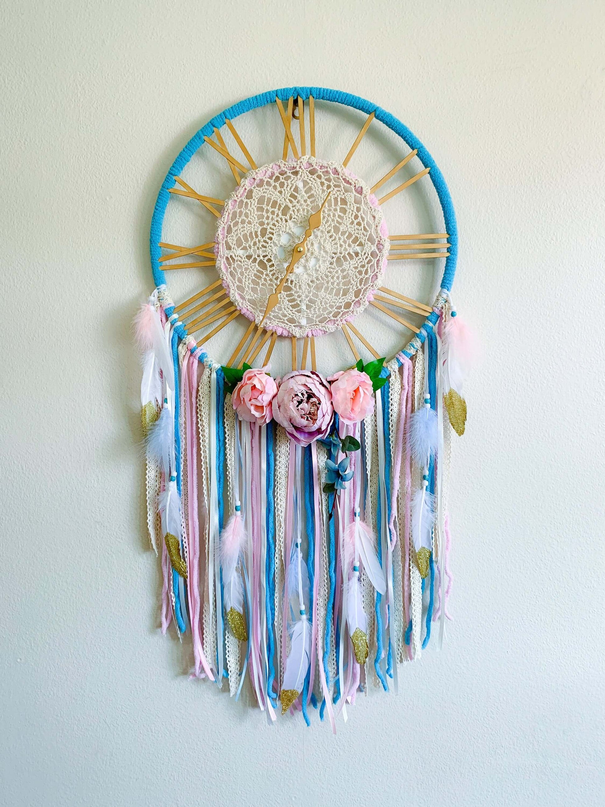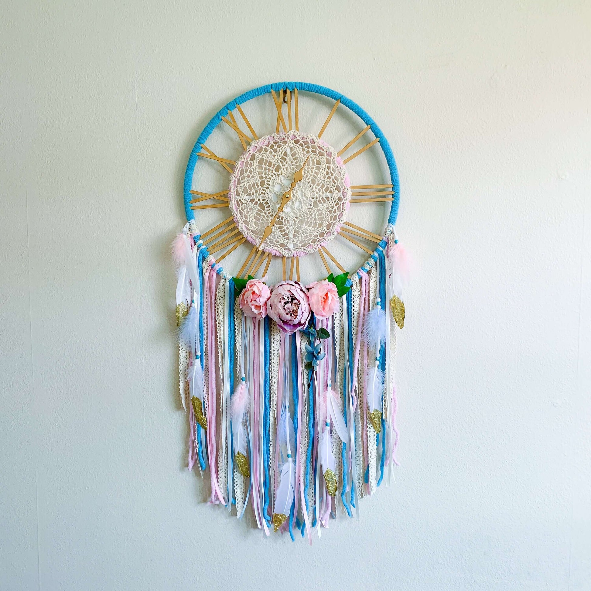 boho dreamcatcher, peaceful sleep decor, mindfulness wall art, calming bedroom accessory, pastel dream catcher, handmade dreamcatcher, floral nursery decor, healthy sleep rituals, lace wall hanging, spiritual home gift, holistic living decor, eco friendly dreamcatcher, healing home vibe, meditation room decor, sleep wellness ornament