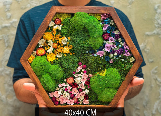 Hexagonal Moss Wall Art - Preserved Moss & Flower Panels for Home Decor